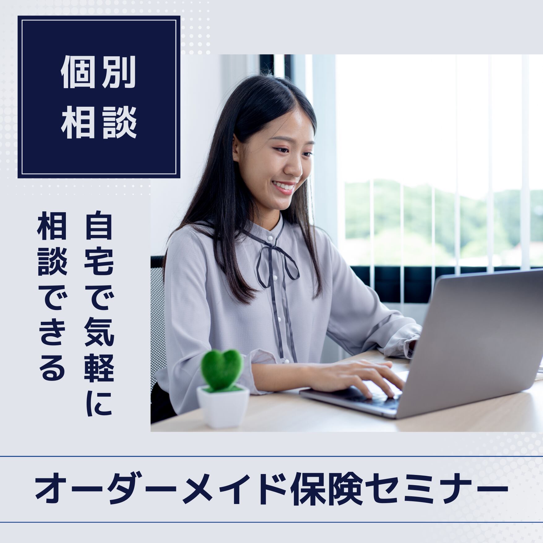 「オーダーメイド保険セミナー」は、自分に合う保険を知りたい方、今の保険が最適か確認したい方、お金についても学びたい方々に向けたオンラインセミナーです。保険の基礎知識から選び方、節約方法まで、一人ひとりのライフプランに合わせた最適な保険を選ぶサポートを実施します。
